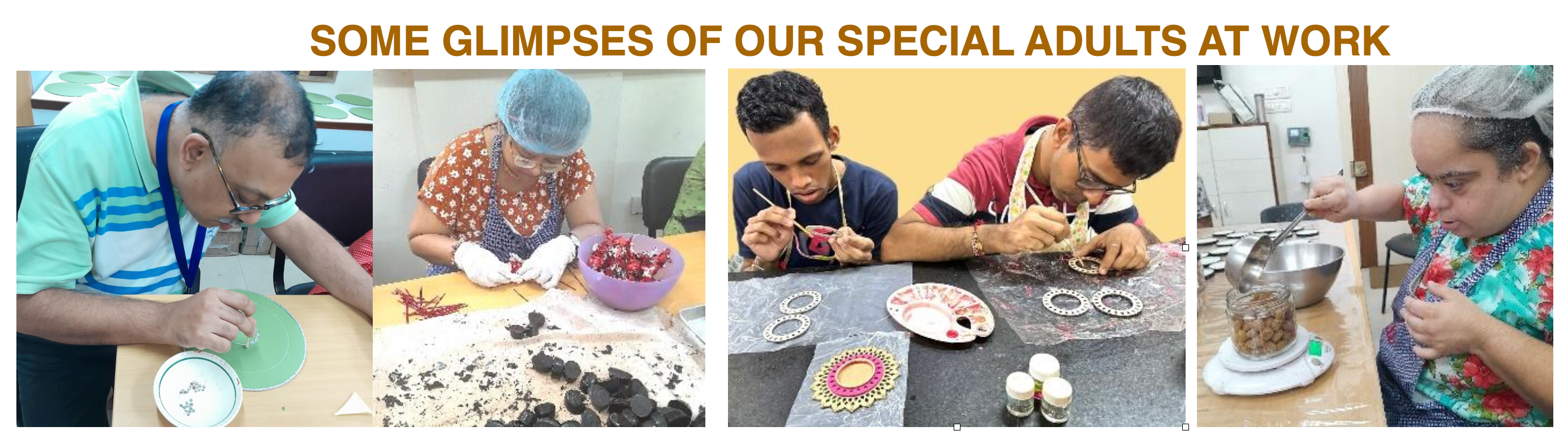 At Kshitij, they offer programs centered around two key areas: functional and vocational skills training. Adults receive hands-on training in crafting exquisite handmade products and preparing a variety of delicious confectioneries and savouries. Additionally, they are guided in developing functional and life skills to help them navigate everyday challenges with confidence. To support their overall growth, Kshitij also enables therapeutic services like counseling, music and dance therapy, and the like. Structured and specialized support is provided to adults with autism, enabling them to thrive alongside peers with other intellectual disabilities. All the adults receive a weekly stipend, which makes them feel motivated to be contributing members of their families and provides a boost to their self-esteem.